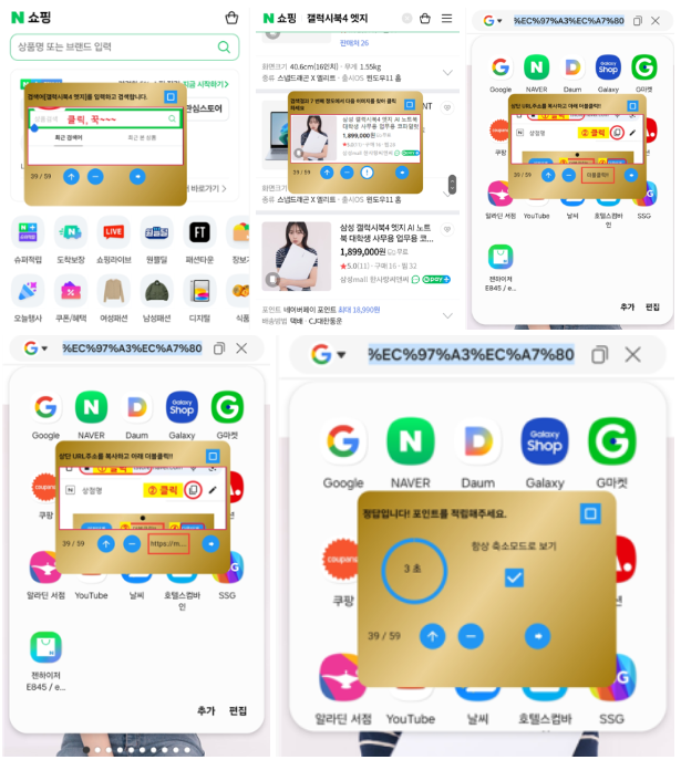 검색하기 → 제시된 상품 클릭 → URL 주소 복사 → 더블클릭