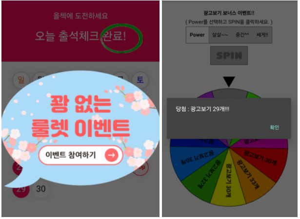 룰렛 돌리면서 보너스 이벤트가 진행 되며