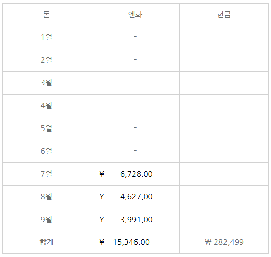 엔화는 계속 정리 했는데 현금은 따로 정리를 안해서..