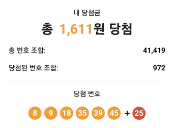 1,611원 당첨이 되어서 다행이네요 !