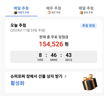 안녕하세요 앱테크와 일상을 적는 블로그 그니 입니다. 오늘은 슈퍼로찌로 모은 금액 출금 하는 방법을 적어 볼려고 해요 2024-10-26 당첨 금액 까지 하여 만원이 모여서 당첨금