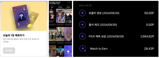 대신 월 ~ 토(요일) - 100포인트 / 일(요일) - 500포인트 인거 같더라구요!