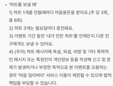 하트를 보낼때 ( 주당 3회 / 총 6회 ) 가능 하며
