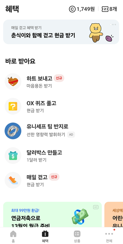 카카오뱅크에서 연말이여서 그런지 지금