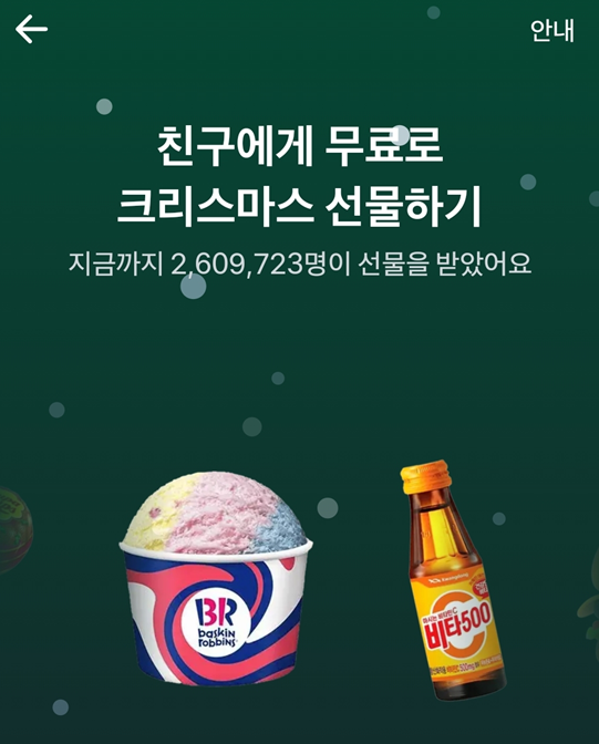 이벤트 내용은 메리크리스마스 친구가 크리스마스 선물을 보냈어요.
