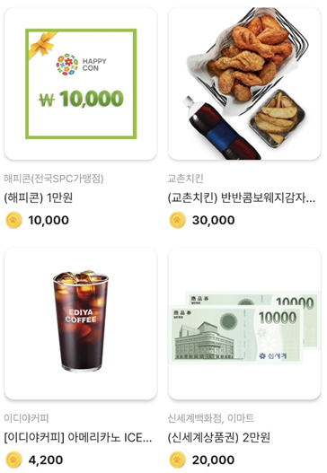 기프티콘도 다양하게 있어서 좋았던 것 같고!