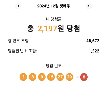 이제 돌아와서 12월 3주차 당첨 금액을 소개 드려요!