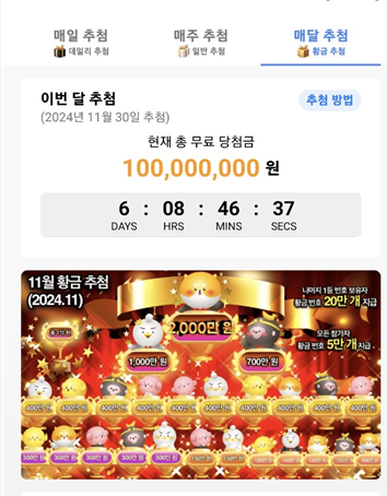 이렇게 모은 상자로 매주 / 매달 / 오늘 3가지 방법으로 추첨을 하는 방식 이고