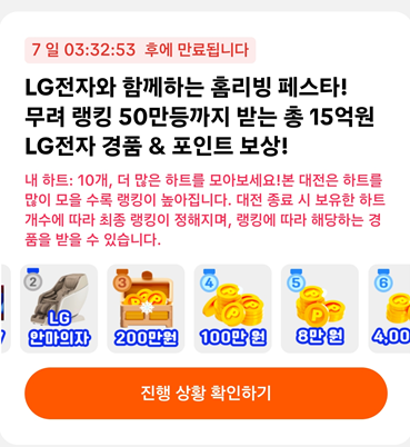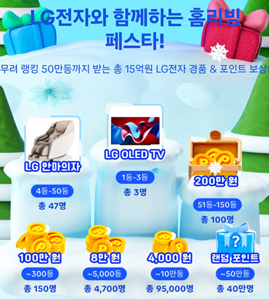 LG전자와 함께하는 홈리빙 페스타! 무려 랭킹 50만등까지 받는 총 15억원 LG전자 경품 & 포인트 보