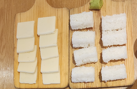 소고기 + 밥 + 와사비 조금 해서 초밥을 만들어 먹었는데 손이 가는 맛이더라구요!