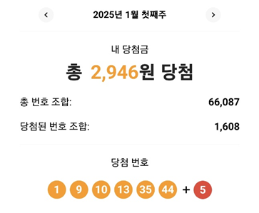 이제 돌아와서 25년도에서 처음으로 발표하는 1월 1주차 당첨 금액을 소개 드려요!