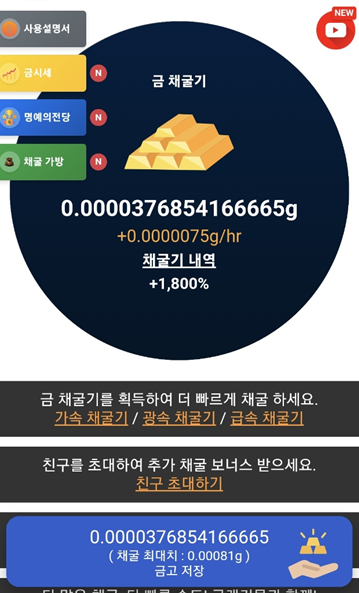 금캐기 어플은 간단한 방치형 앱테크여서 포인트 모으기도 쉽고