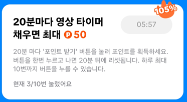 하루에 10회 기회가 제공 되며 총 50포인트 획득이 가능해요 !
