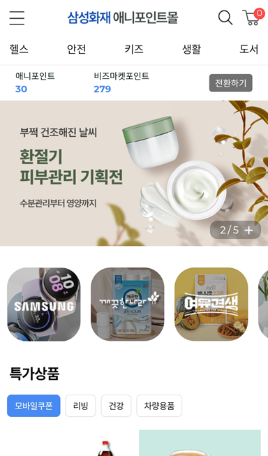 삼성화재 다이렉트 착 에서 포인트관리 클릭