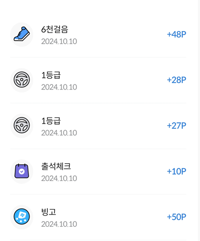운전해도 등급에 따라 포인트가 지급 되며 , 빙고판 참여 해도 포인트가 모입니다.