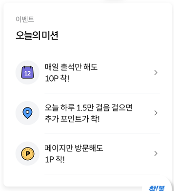 오늘 하루 1.5만 걸음 걸으면 추가포인트 착! ( 10포인트 적립 )