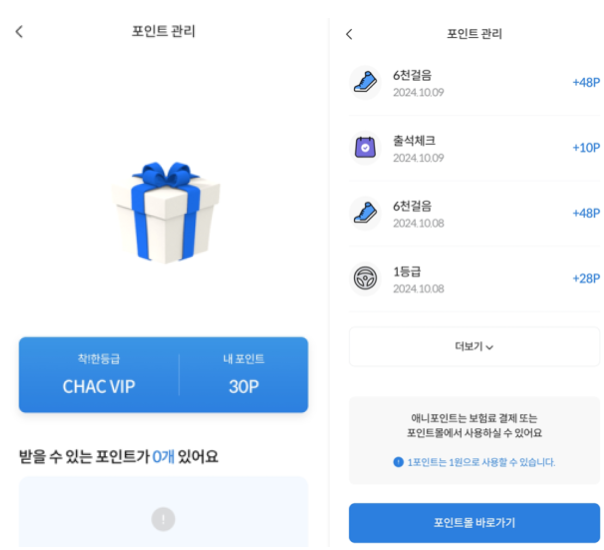 6천 걸음시 48포인트! 획득까지 가능합니다.