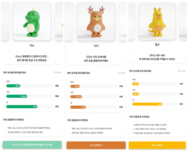 잘못 고르셨다고 하셔도 포인트를 모아서 구매하셔서 펫을 늘려가면 좋을 것 같습니다.