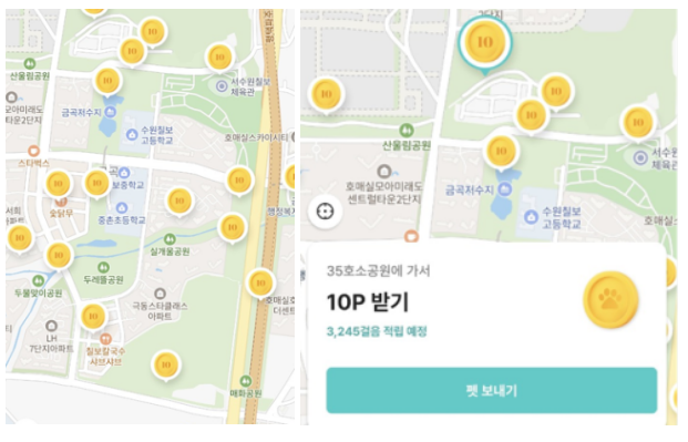 펫이 만보기 채우고 돈 버는 지도 앱테크