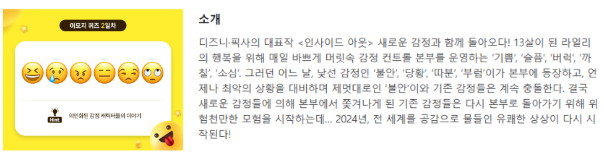 열심히 찾아 봤는데 "인사이드 아웃" 기쁨 슬픔 버럭 까칠 소심 / 불안 당황 따분 부럽 등장 ..!