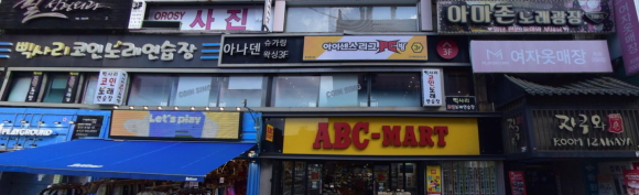 ABC MART 건물 2층에 삑사리코인노래방이 있습니다.